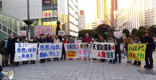 集会後、思想と信教に自由の実現を呼びかけてデモをおこない、JR浜松駅で、高市政権の「強い国づくり」の名での憲法改悪と戦争準備の動きに抗議の声を上げた。スパイ防止法制定の動きについても思想と言論を統制するものとし、反対の意思を示した。