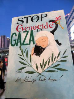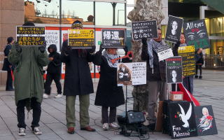 同日、駅前ではパレスチナ連帯スタンディングがおこなわれていた。(t)