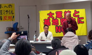 集会では竹内康人さんが「長射程ミサイルの富士配備反対の動き」で話した。話の内容は、長射程ミサイル配備の問題点と東富士演習場の問題点である。集会では横須賀から2隻のミサイル艦がイラク攻撃に参加し、それに対し抗議行動がとることも報告された。
