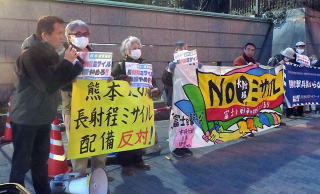 また、STOP大軍拡アクションから、前日7日夜に富士から健軍にミサイル車両が搬出され、8日深夜に健軍に到着するとみられることから、防衛省への抗議行動が呼びかけられた。